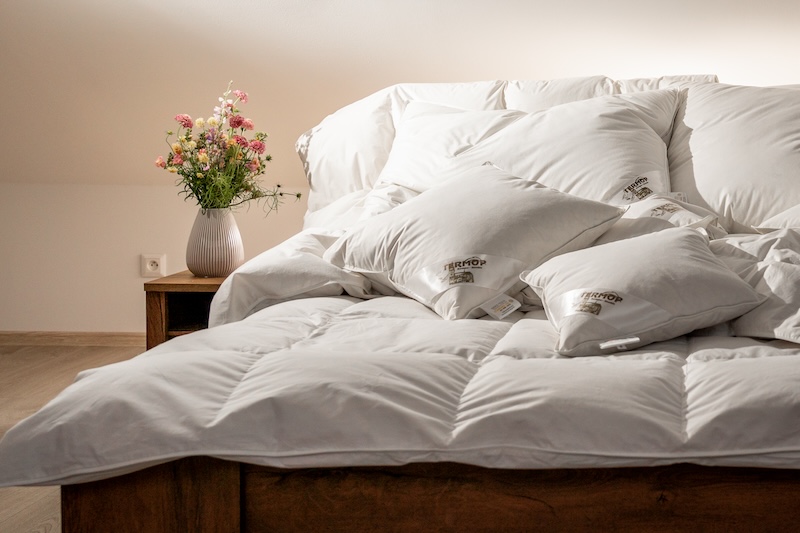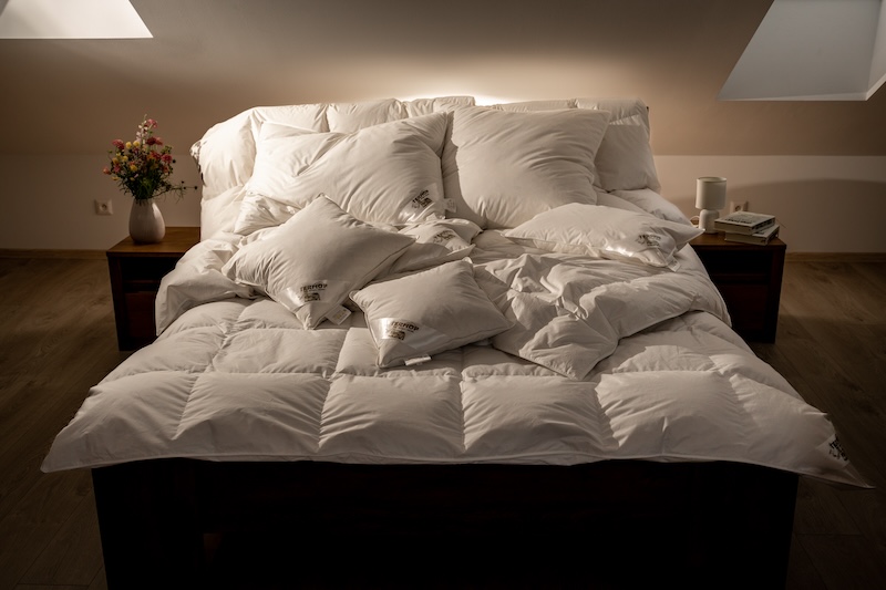 Všetko perie používané v našich výrobkoch pochádza od starostlivo vybraných dodávateľov z Maďarska. Požívame len perie, ktoré vzniká ako druhotný produkt pri chove husí.